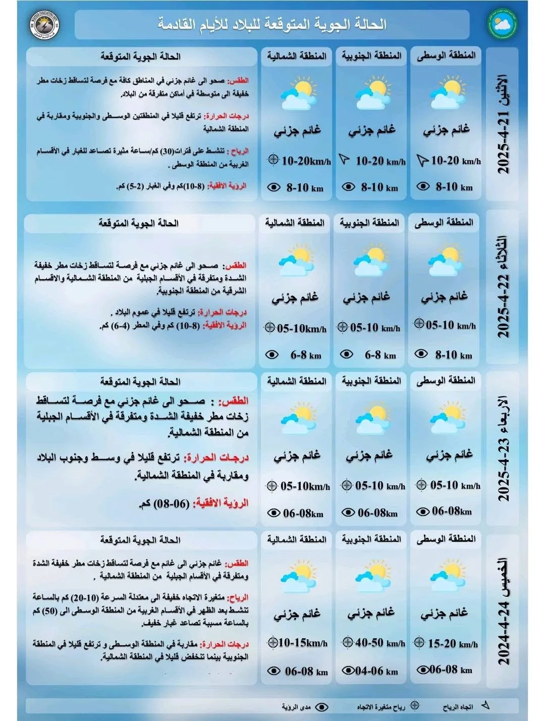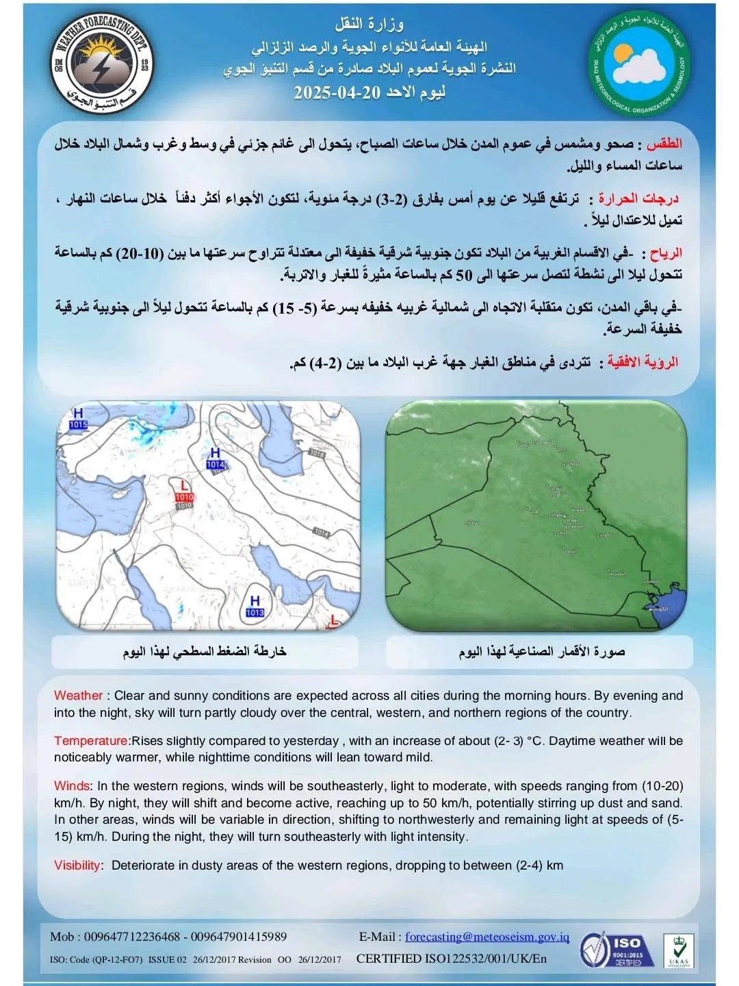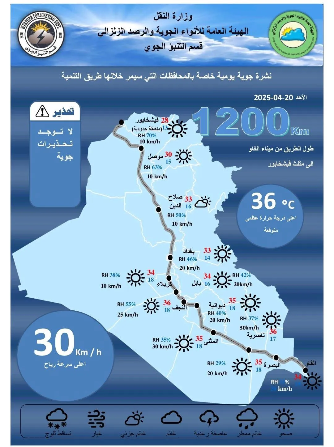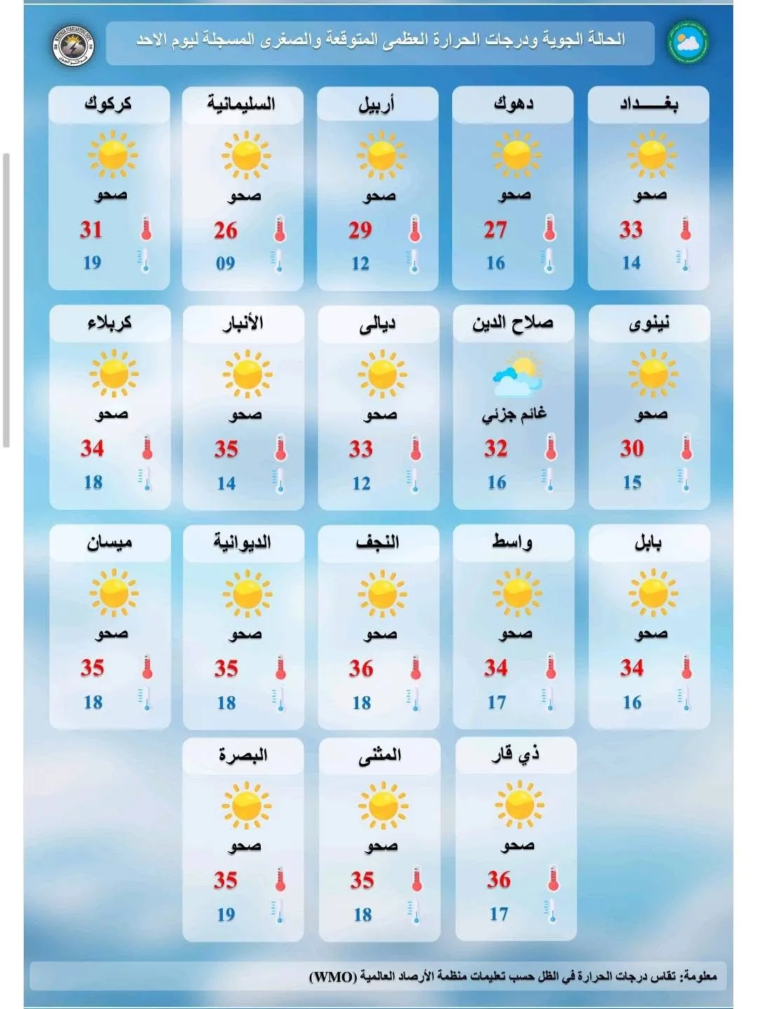 توقعت هيئة الأنواء الجوية، استمرار ارتفاع درجات الحرارة في العراق مصحوبة بالغبار.