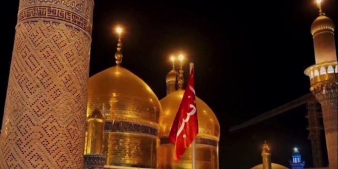 رفعت أعلى مرقد الإمامين الكاظمين في مدينة الكاظمية المقدسة راية مرقد السيدة زينب عليها السلام والتي أنزلت من أعلى قبة المرقد الشريف في دمشق مؤخراً.