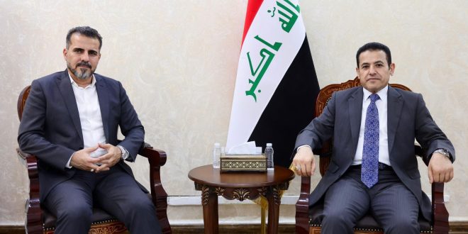 بحث مستشار الأمن القومي العراقي قاسم الأعرجي مع عضو اللجنة المالية النيابية  النائب حسين مؤنس مستجدات الأوضاع في العراق والمنطقة على المستويين السياسي والأمني.