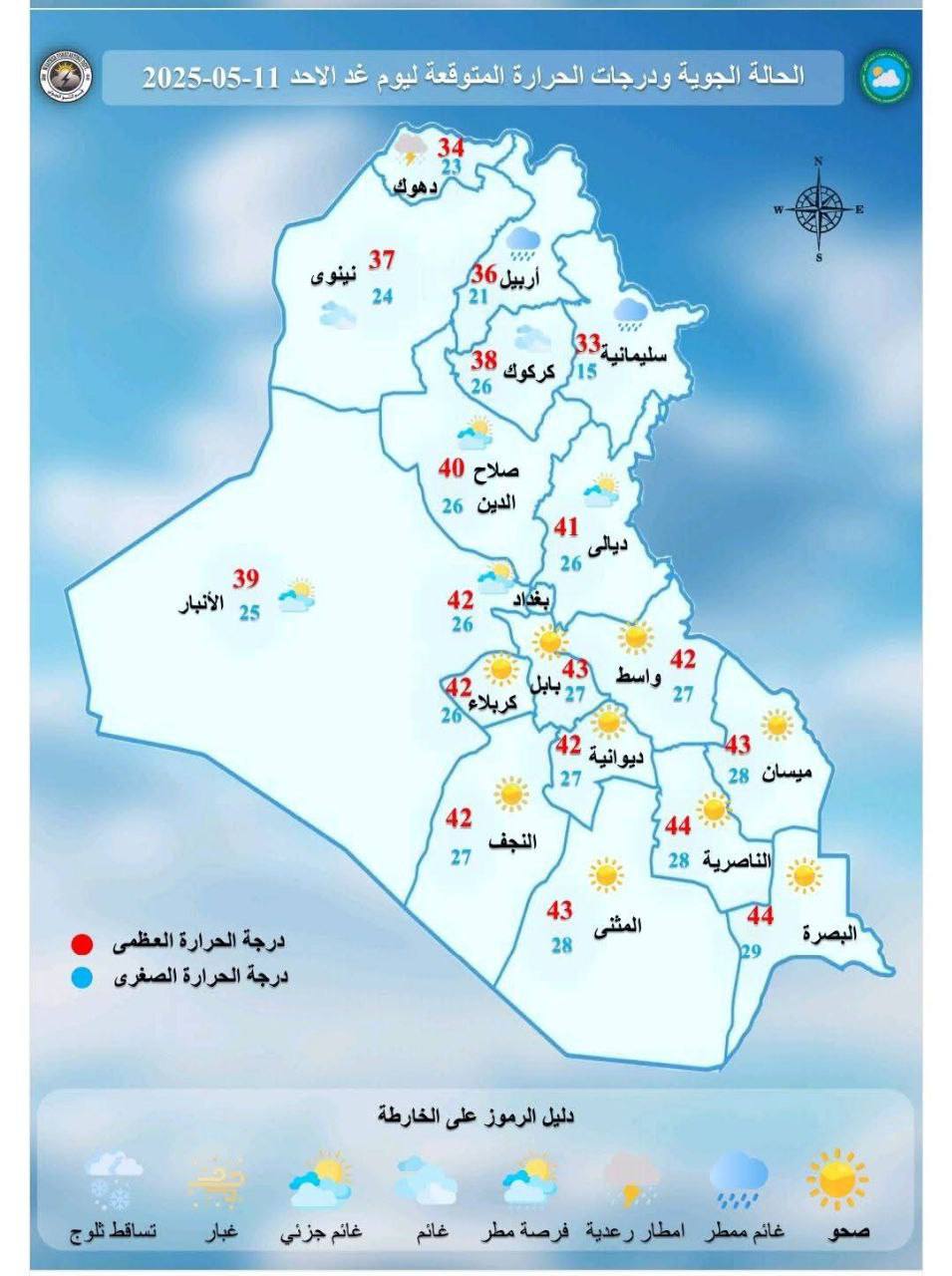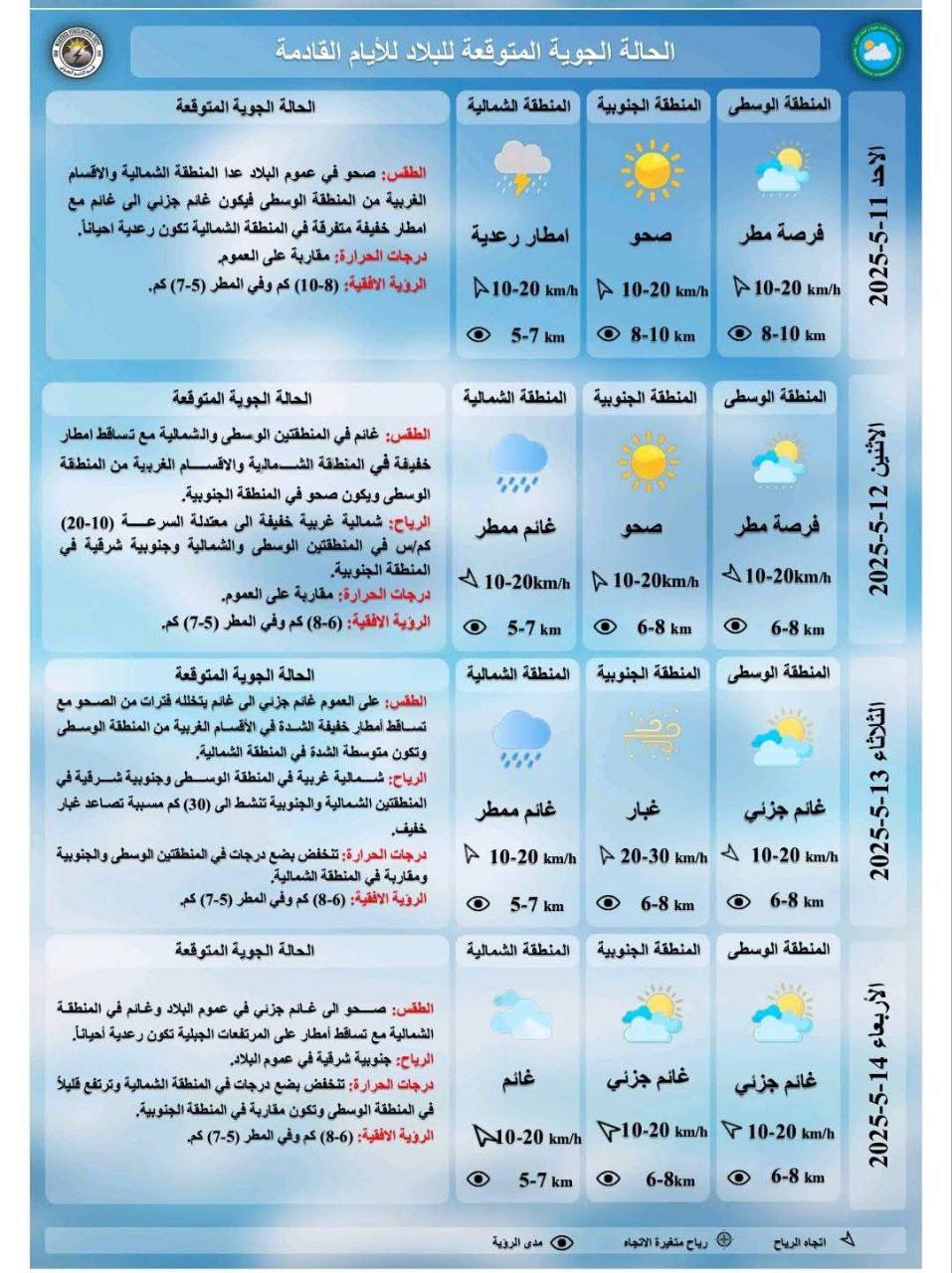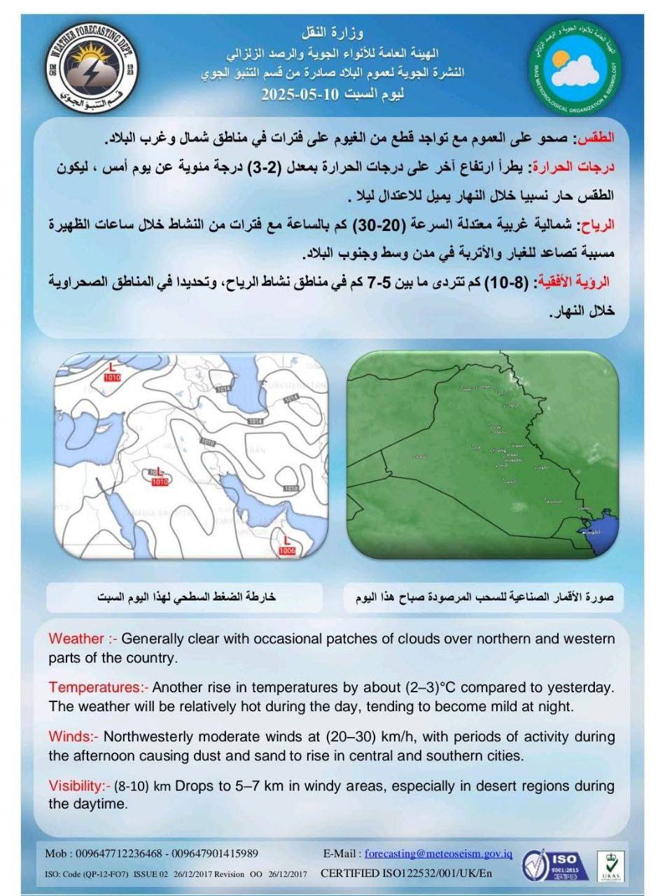 توقعت هيئة الأنواء الجوية، بأن يكون طقس الأسبوع الحالي في العراق ممطر مع تصاعد الغبار. شاركها Facebook Twitter Pinterest