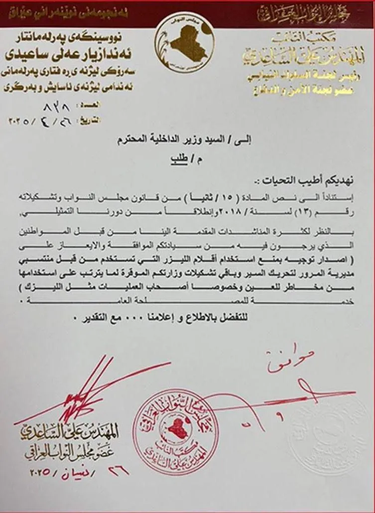وافق وزير الداخلية عبد الأمير الشمري، اليوم الأحد، على منع رجال المرور وباقي تشكيلات الوزارة من استخدام أجهزة الليزر المستخدمة لتنظيم حركة السير.