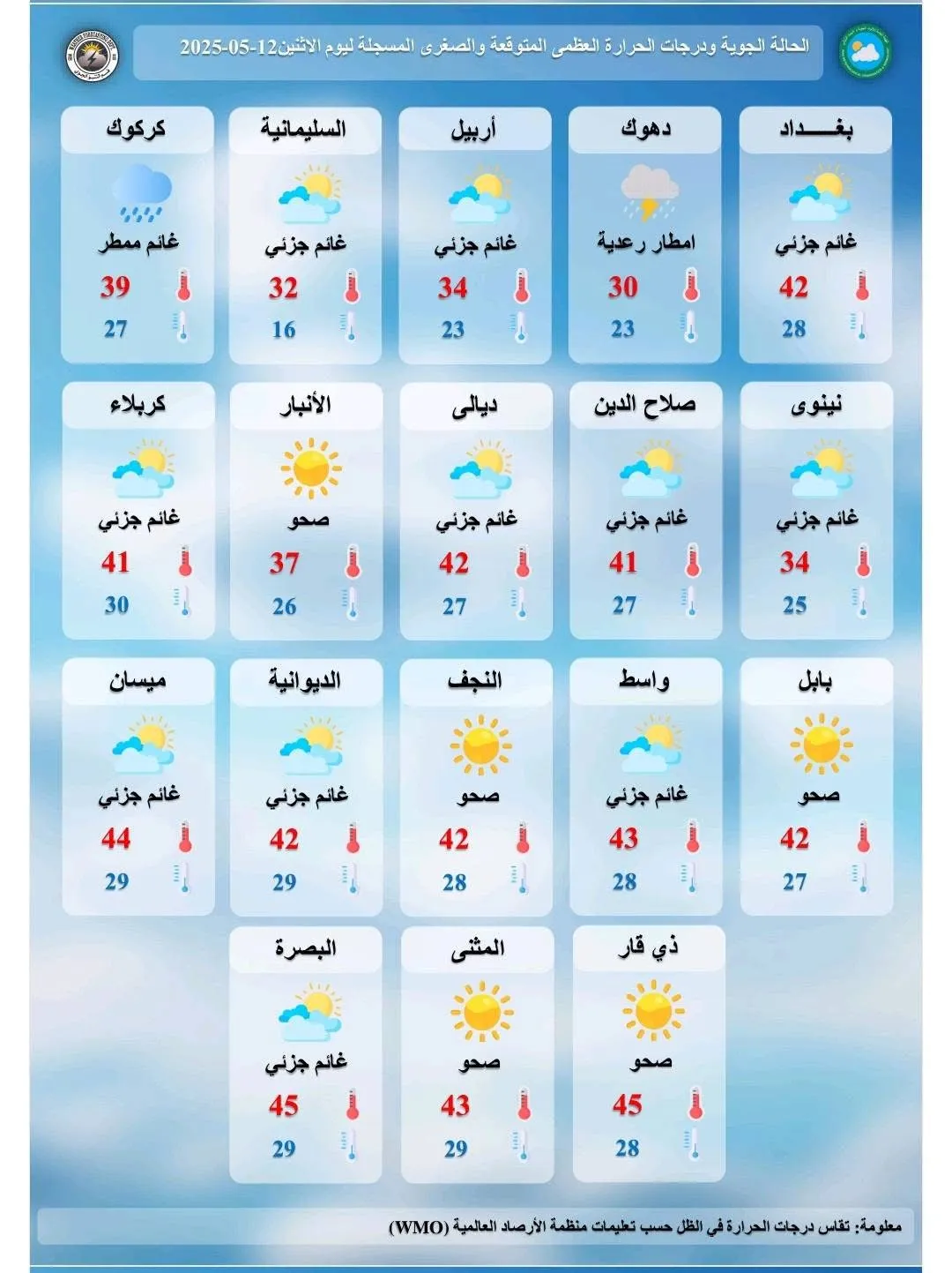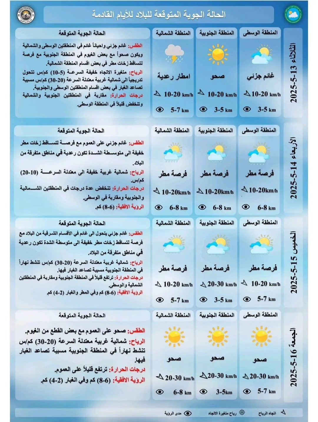 توقعت هيئة الأنواء الجوية، طقس العراق للأيام المقبلة.