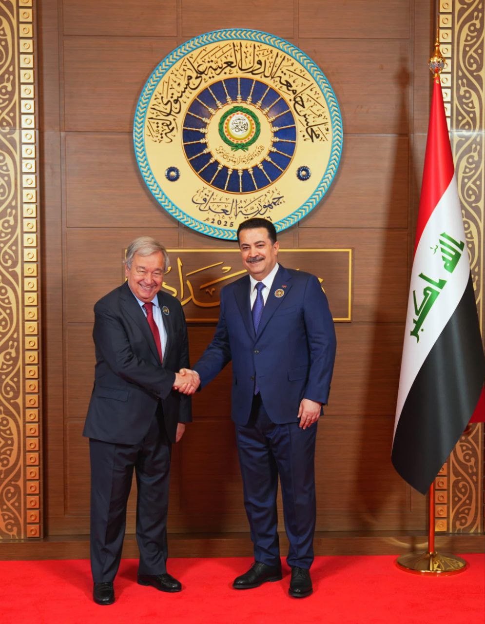 وذكر بيان لمكتب السوداني، أن “السوداني استقبل الأمين العام لمجلس التعاون لدول الخليج العربية جاسم البديوي، وكذلك رئيس وفد الجمهورية الإسلامية الموريتانية محمد ولد الشيخ الغزواني، بالإضافة الى الأمين العام للأمم المتحدة أنطونيو غوتيريش في مستهل في أعمال القمّة العربية الـ34 التي تعقد في بغداد اليوم السبت”.