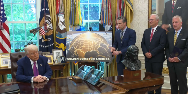 وأعلن الرئيس الأمريكي دونالد ترامب في تصريحات له الثلاثاء عن البدء في بناء الدرع الصاروخي “القبة الذهبية” ، مبيناً أن القبة الذهبية ستكون قادرة على التعامل مع أي هجوم صاروخي ولو من الفضاء.