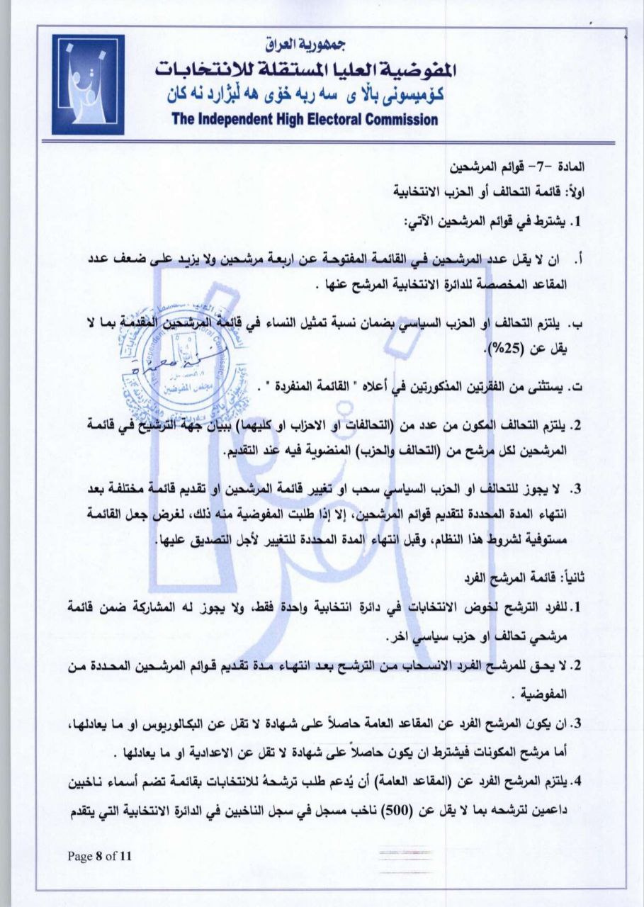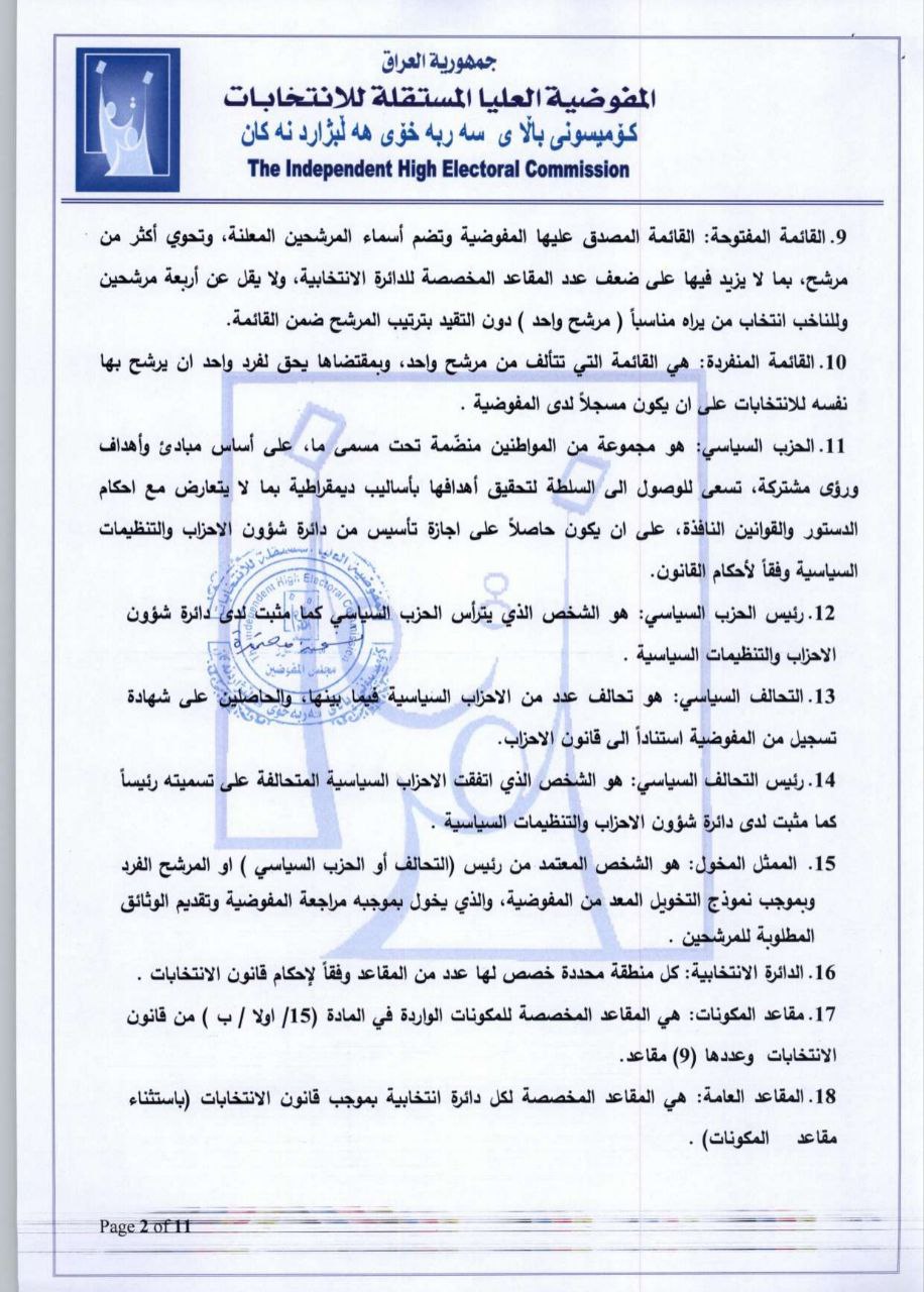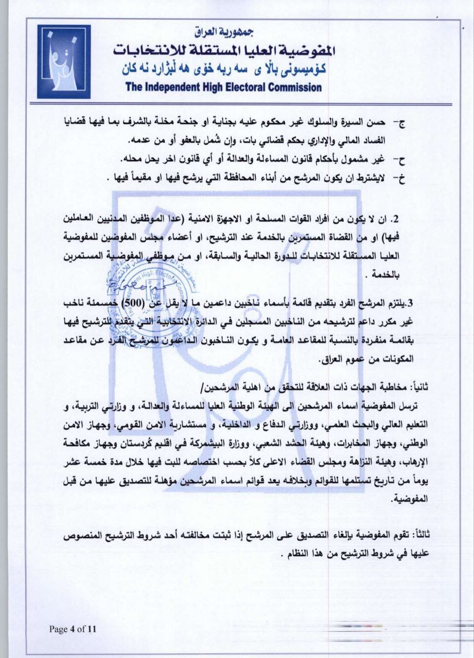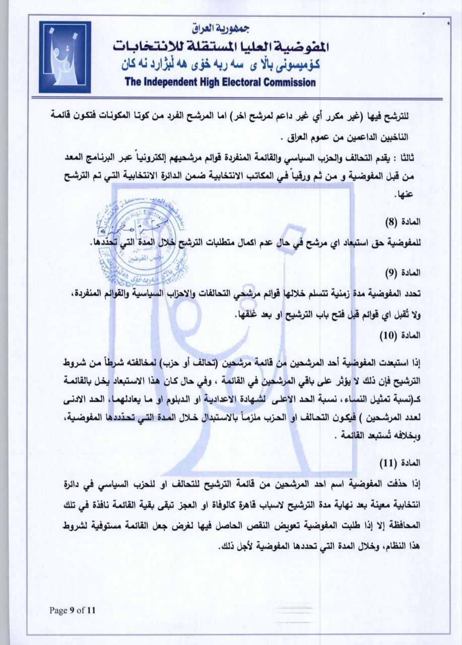 بـ 329 مقعداً.. مفوضية الانتخابـــــات تعلن نظام تسجيل المرشحين والمصادقة عليهم