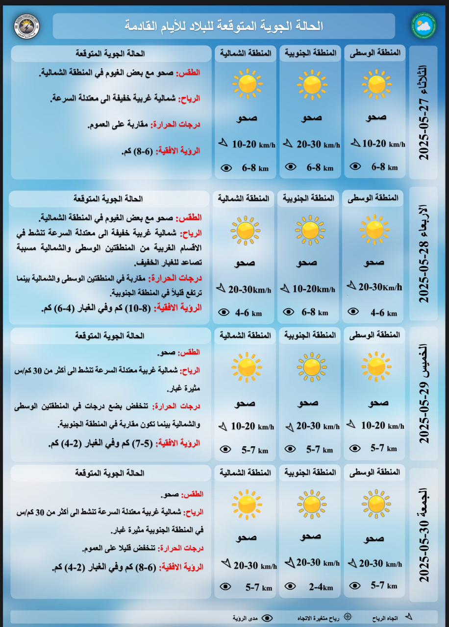 توقعت هيئة الأنواء الجوية، بدخول كتلة هوائية حارة أجواء العراق.