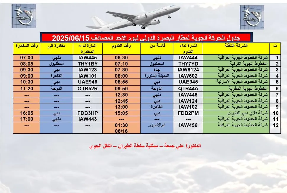 أعلن مطار البصرة الدولي، اليوم الأحد، جدول رحلاته الجوية بعد استئنافها. شاركها Facebook Twitter Pinterest
