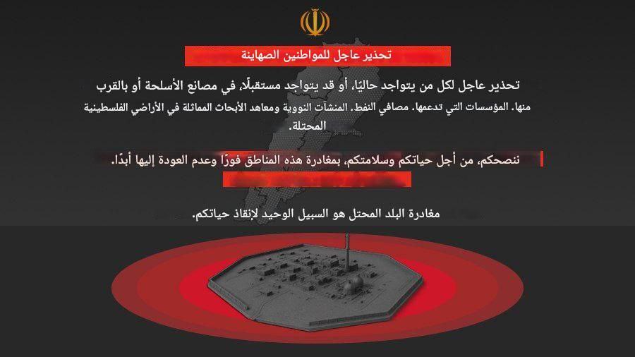أصدر الحرس الثوري الإيراني، اليوم الأحد، تحذيراً لسكان الأراضي المحتلة. وقال الحرس الثوري الإيراني في بيان تلقته ( الغدير) : إنه “أرسل تحذيرات لسكان الأراضي المحتلة بضرورة مغادرة المناطق القريبة من المنشآت النووية والنفطية”. شاركها Facebook Twitter Pinterest