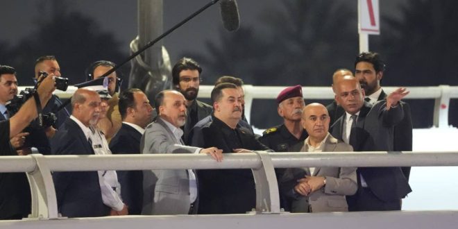 بيان لمكتب رئيس الوزراء ذكر أن السوداني افتتح مساء السبت مُجسّري الطوبجي الدوّارين على مسار شارع 14 تموز في جانب الكرخ ، وهو من مشاريع الحزمة الأولى لفكّ الاختناقات المرورية في بغداد.