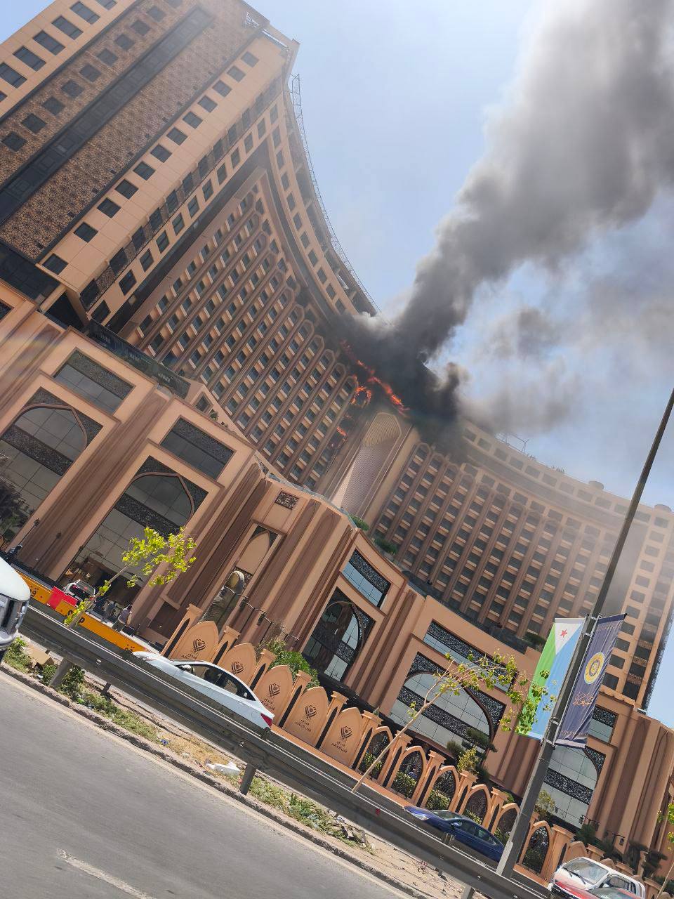 بالصور.. حريق كبير يلتهم فندق “قلب العالم” وسط بغداد