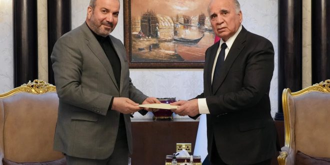 بيان لوزارة الخارجية ذكر أن نائب رئيس مجلس الوزراء وزير الخارجية فؤاد حسين استقبل الاثنين السفير الإيراني لدى العراق محمد كاظم آل صادق ، موضحاً أن السفير آل صادق سلّم خلال اللقاء رسالة خطية من وزير الخارجية الإيراني تناولت مستجدات الأوضاع السياسية والأمنية في المنطقة.
