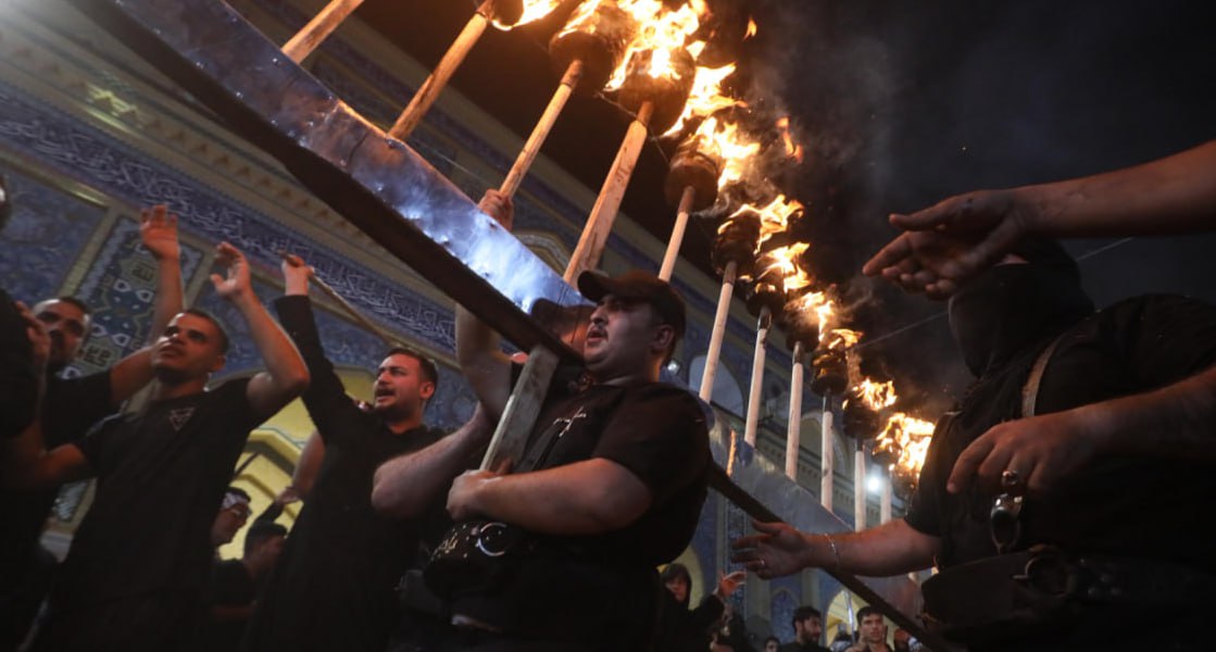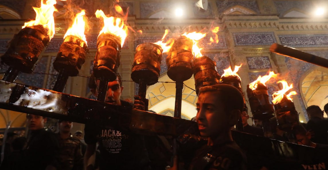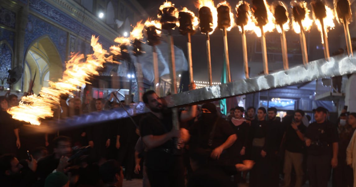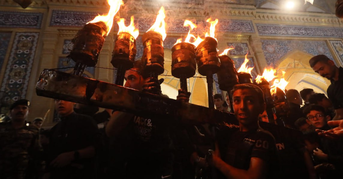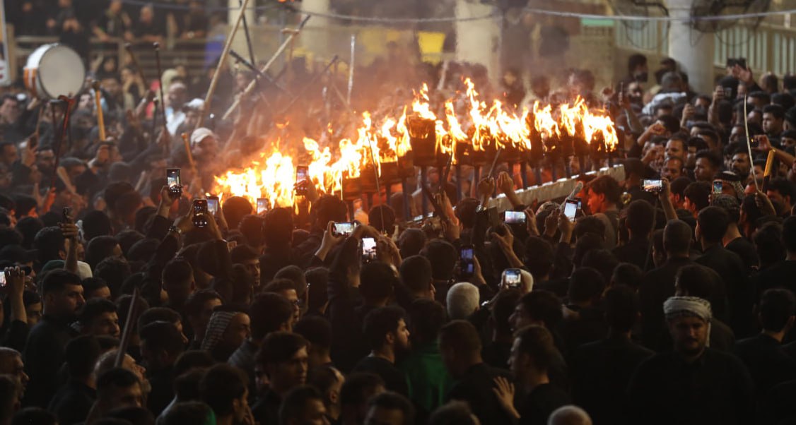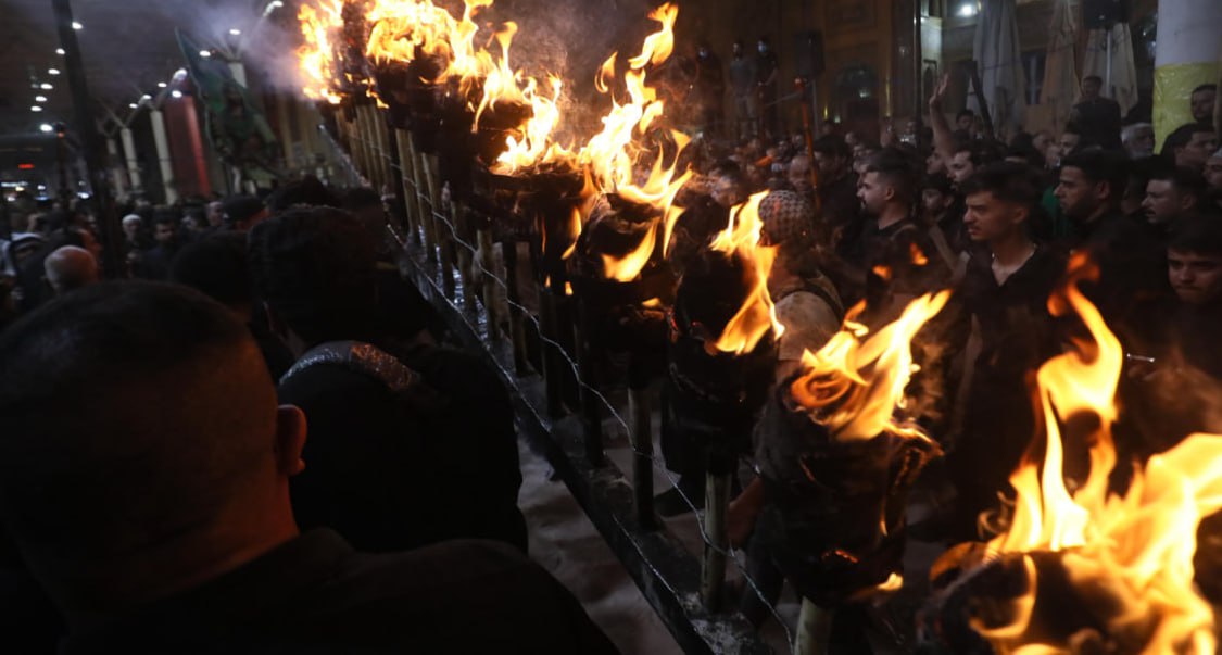علت أكتاف ورؤوس أهالي محافظة النجف الاشرف، مشاعل النار وهي تلهب أبناء العشائر هناك الذين أخذوا على عاتقهم إنارة درب كربلاء المقدسة كل عام قبل العاشر من شهر محرم الحرام.