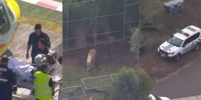 تعرضت امرأة استرالية، اليوم الاحد، لهجوم مفاجئ من أحد أسود حديقة “دار لينغ” في ولاية كوينز والذي تمكن من قضم ذراعها بشكل سريع ومرعب.