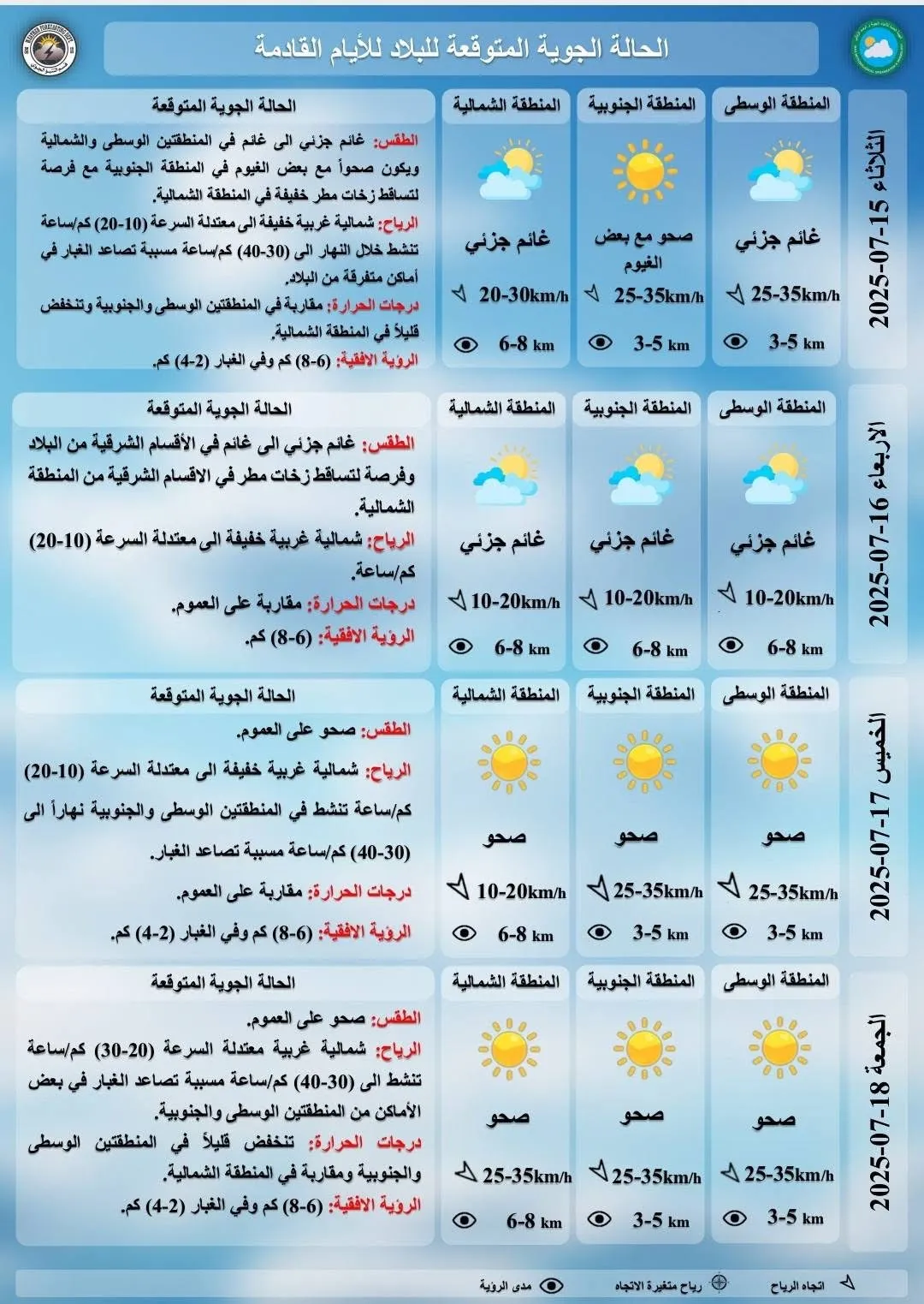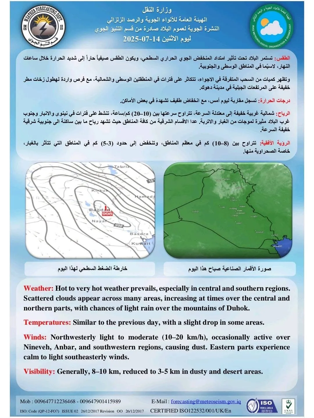 توقعت هيئة الأنواء الجوية، استمرار ارتفاع درجات الحرارة بالعراق.