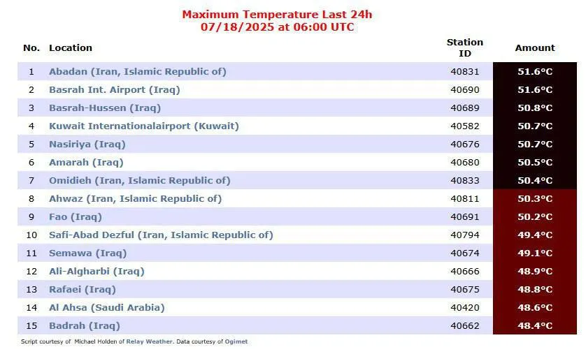 سجلت 9 مدن عراقية أعلى درجات الحرارة في العالم، اليوم الجمعة، تتصدرها البصرة. شاركها Facebook Twitter Pinterest