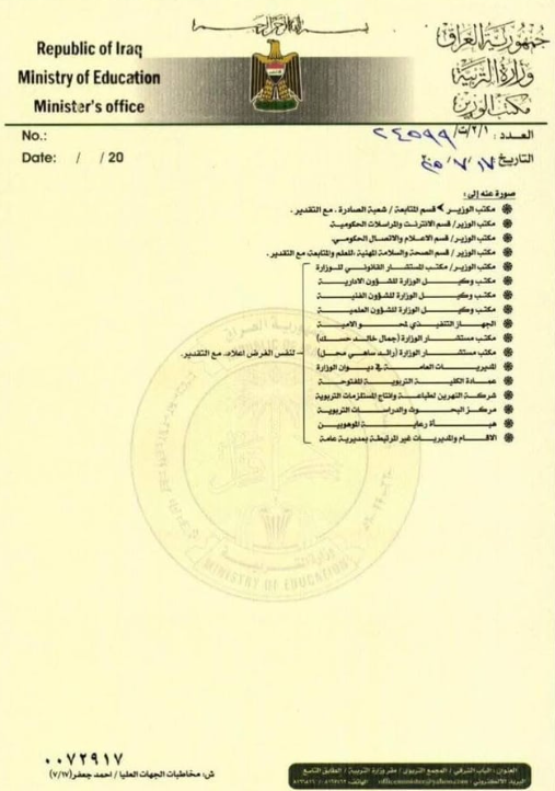 جاء ذلك في وثقة صادرة عن الوزارة، حصلت (الغدير) على نسخة منها: