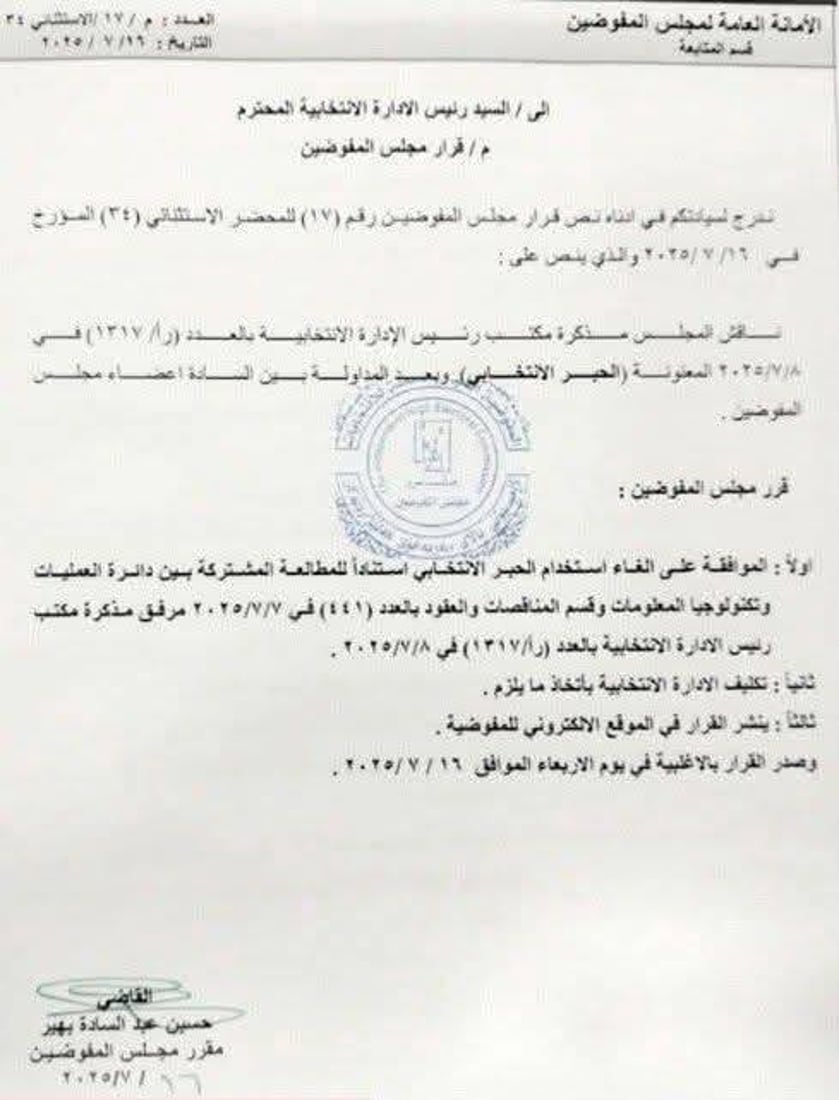 أصدرت الأمانة العامة لمجلس المفوضين قراراً بالأغلبية، يقضي بإلغاء استخدام الحبر الانتخابي، عند الاقتراع. شاركها Facebook Twitter Pinterest