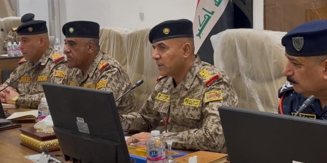 الاجتماع الذي ترأسه الفريق الركن وليد خليفة التميمي قائد عمليات بغداد اجتماعاً موسعاً بحضور نائبي القائد لشؤون “الدفاع والداخلية” ورئيس الأركان وقادة الفرق ومدراء الأجهزة والوكالات الاستخبارية الملحقة بها وممثلين عن هيئة الحشد الشعبي وعدد من ضباط هيئة الركن ، جرى خلاله عرض الخطط المرسومة لتأمين الزيارة ومناقشتها والخروج بعدد من التوصيات لإنجاح تطبيق الخطة التنظيمية التنسيقية في عموم قواطع المسؤولية.