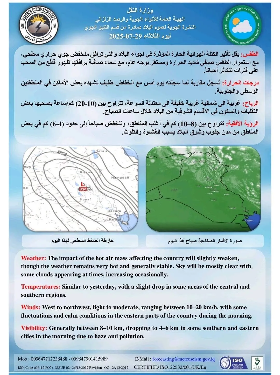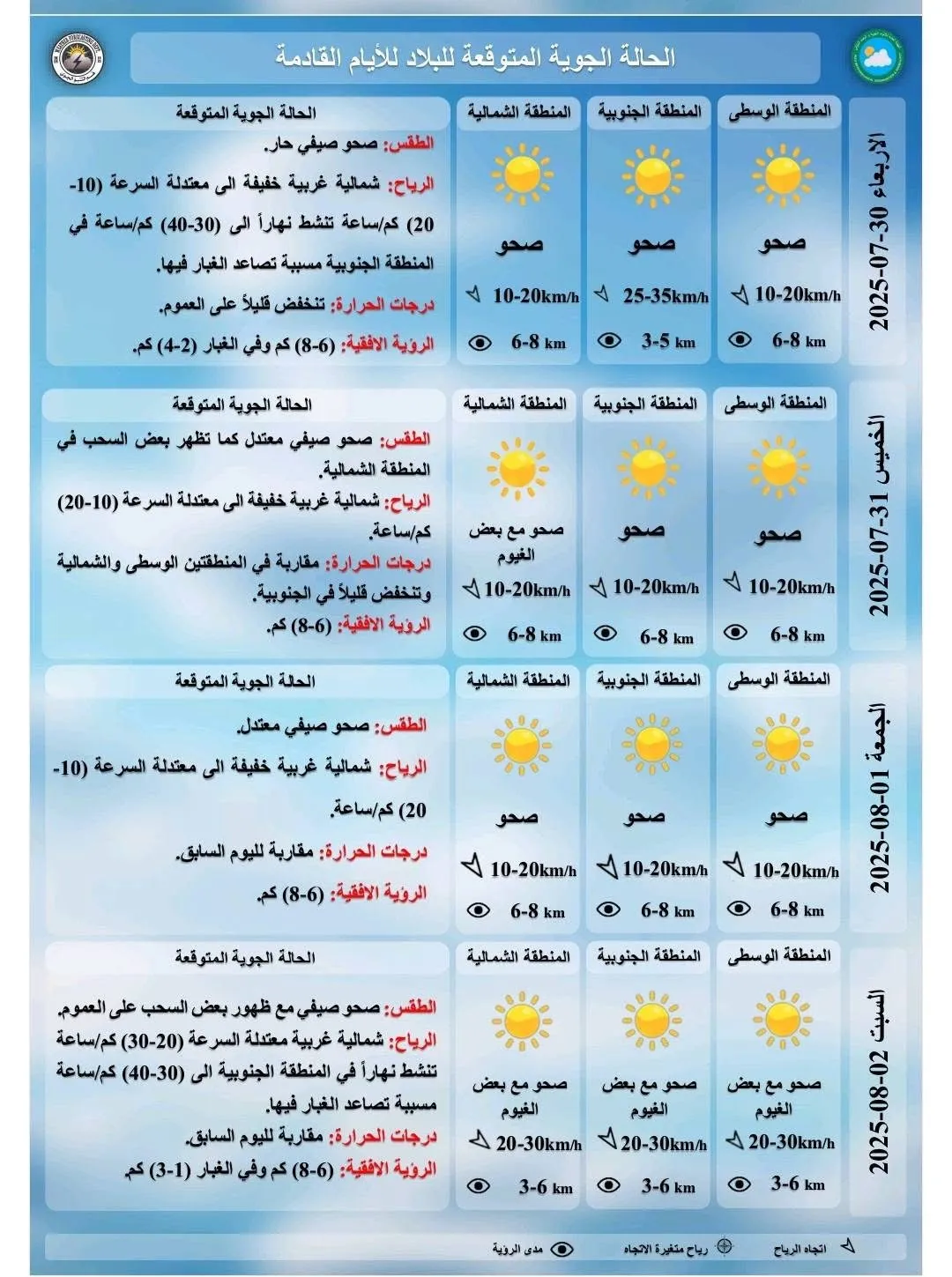 توقعت هيئة الأنواء الجوية، تصاعد الغبار مع بقاء درجات الحرارة المرتفعة. شاركها Facebook Twitter Pinterest