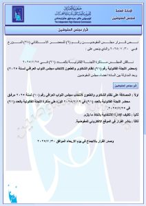 وبحسب وثيقة وردت لـ ( قناة الغدير) قررت المفوضية المصادقة على نظام الشكاوى والطعون للانتخابات البرلمانية 2025، وتكليف الإدارة الانتخابية باتخاذ ما يلزم.