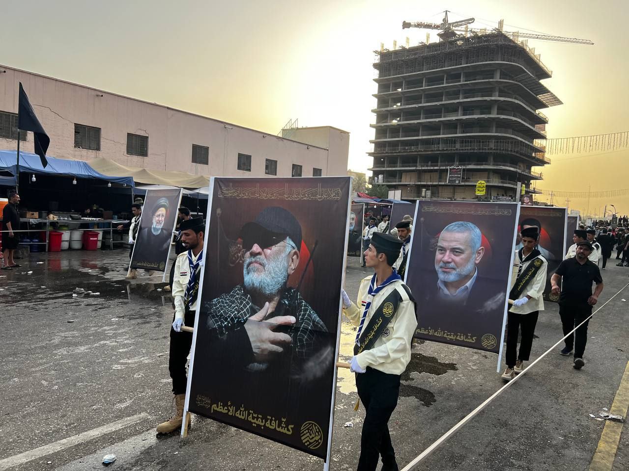 صور الشهداء تزين موكب شهداء بدر الموحد في كربلاء المقدسة