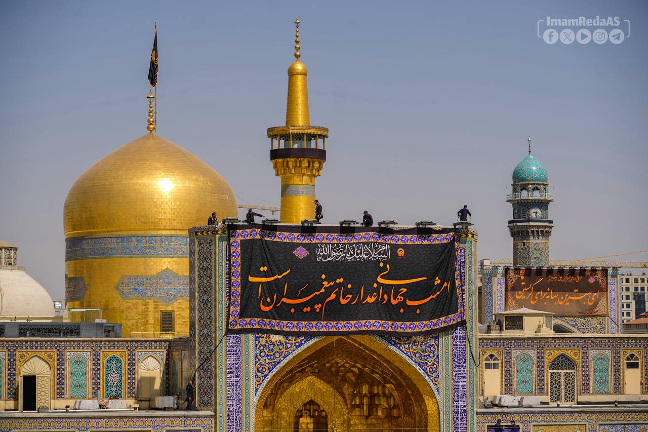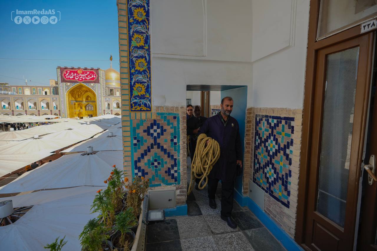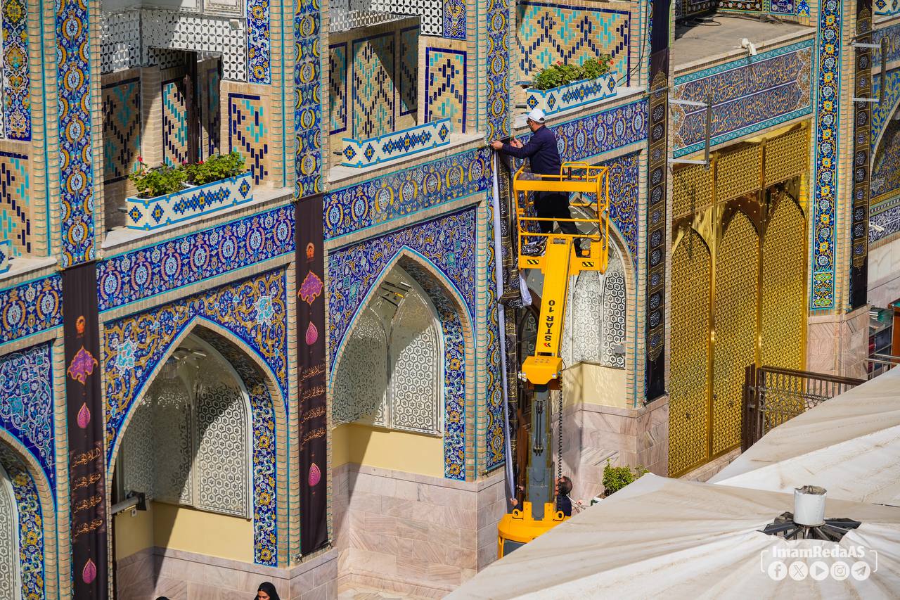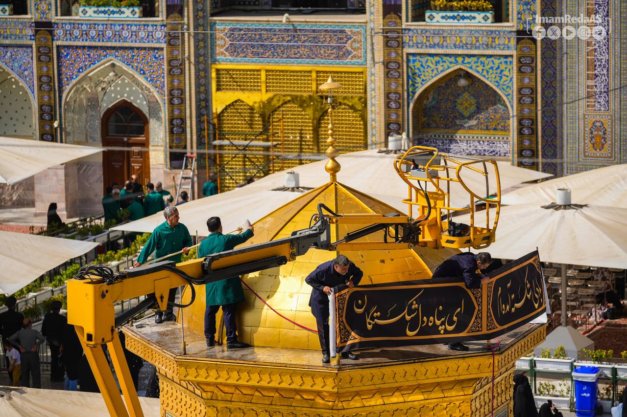 العتبة الرضوية تزين جدرانها استعدادًا لذكرى شهادة الإمام الرضا (ع)