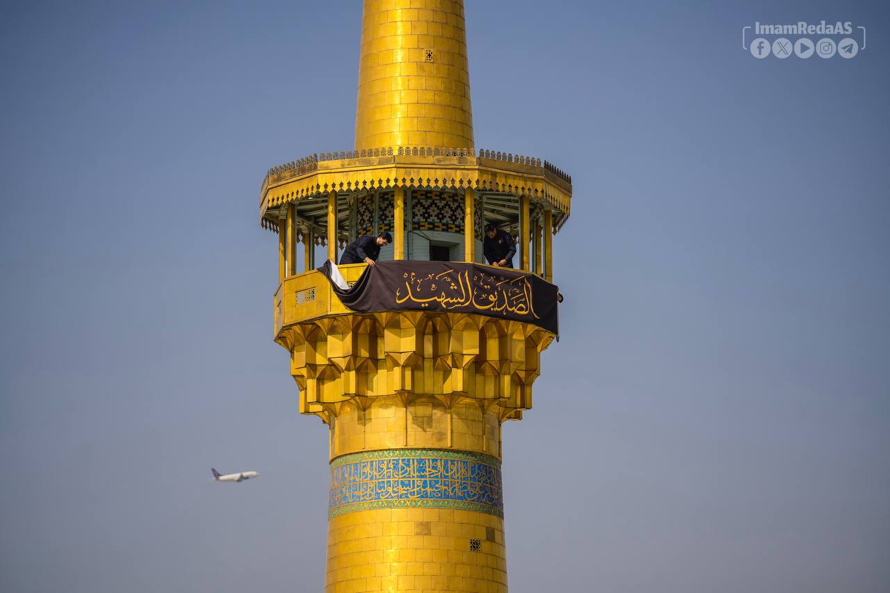 باشرت العتبة الرضوية المقدسة بنشر اللوحات الحائطية في الصحن المطهر، ضمن استعداداتها لإحياء ذكرى شهادة الإمام علي بن موسى الرضا (ع)، وتجهيز الأجواء لاستقبال الزائرين وإقامة المراسم العزائية.
