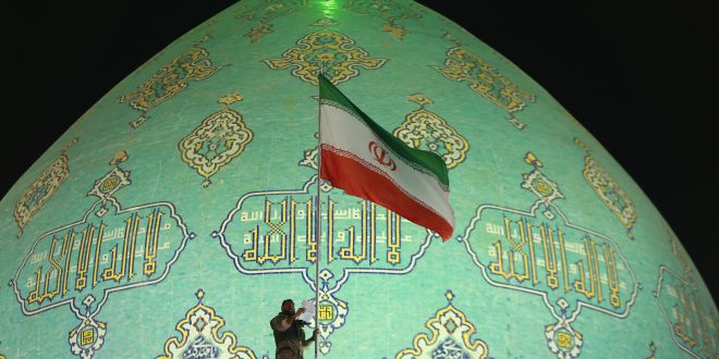 رفع العلم الإيراني على مسجد جمكران في قم وسط حضور شعبي واسع