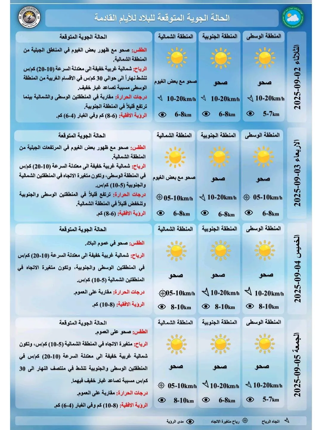 توقعت هيئة الأنواء الجوية ان يكون طقس البلاد معتدل الحرارة.