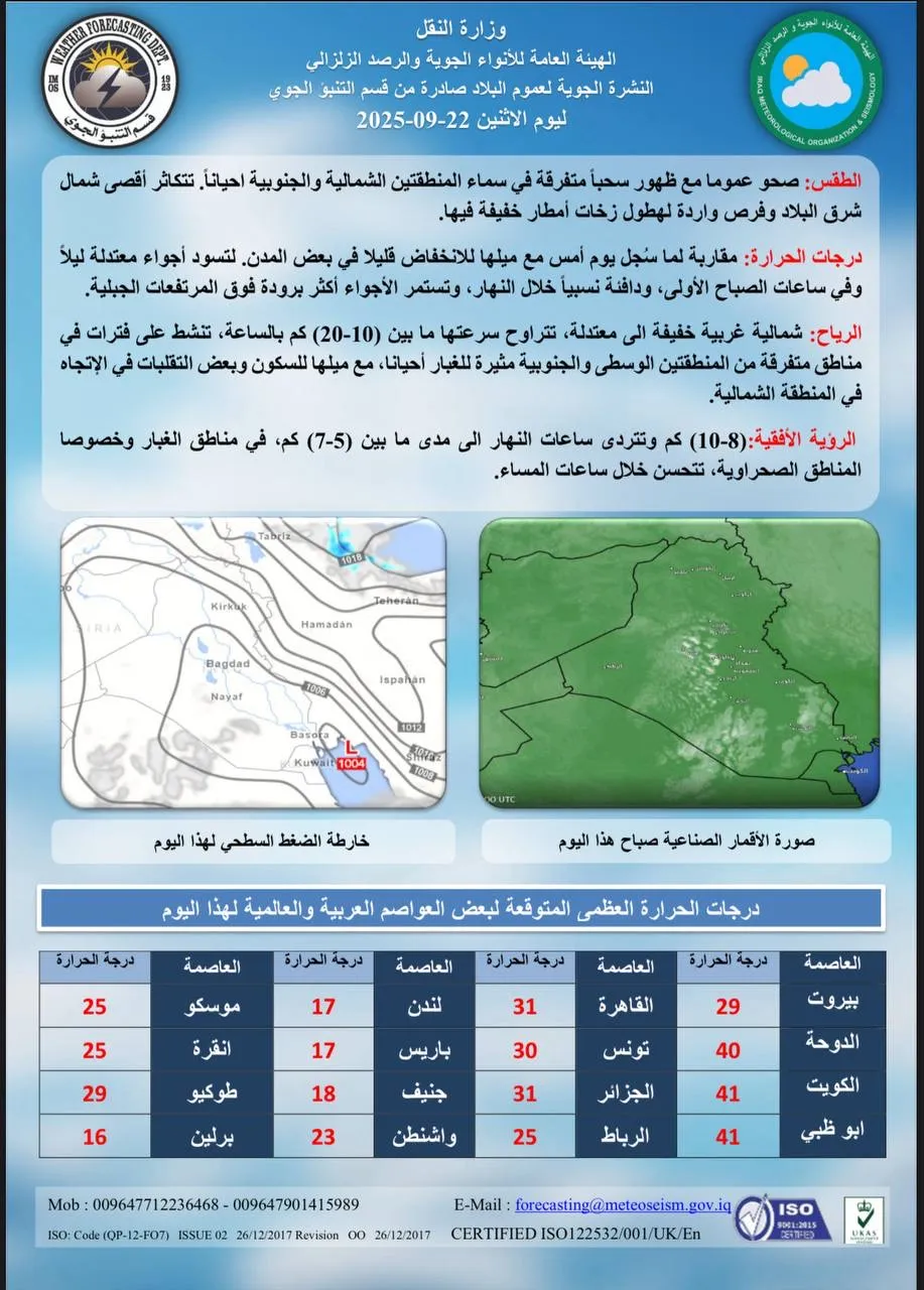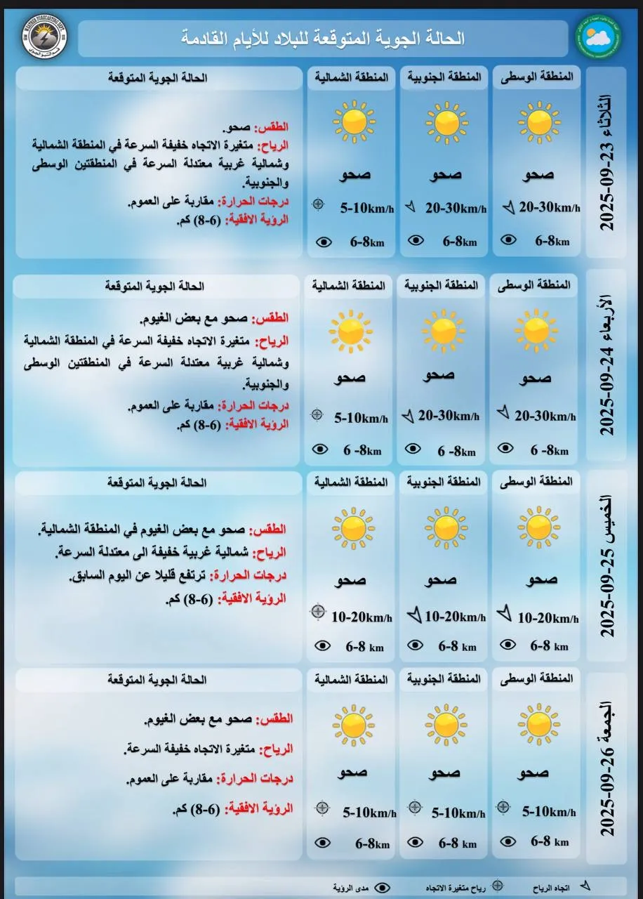 توقعت هيئة الأنواء الجوية، طقس البلاد لليوم الاثنين والأيام المقبلة.