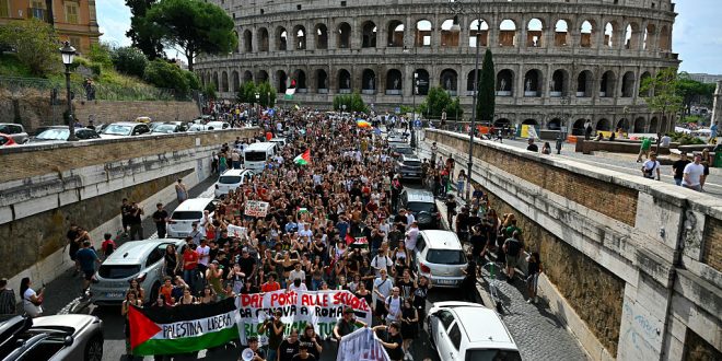 ففي روما، تجمع المئات من تلاميذ المدارس الثانوية أمام محطة “تيرميني”، ملوحين بالأعلام الفلسطينية ومرددين “فلسطين حرة!”.