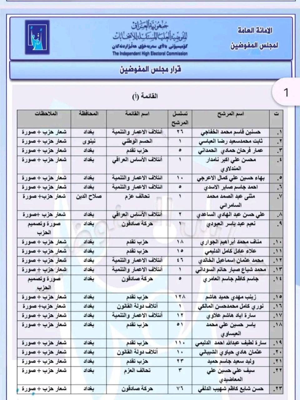وأظهرت وثائق للمفوضية، أن مجلس المفوضين قرر فرض غرامات مالية قدرها 2 مليون دينار بحق 23 مرشحاً للانتخابات، و6 أحزاب وتحالفات سياسية، لمخالفة نظام الحملات الانتخابية.