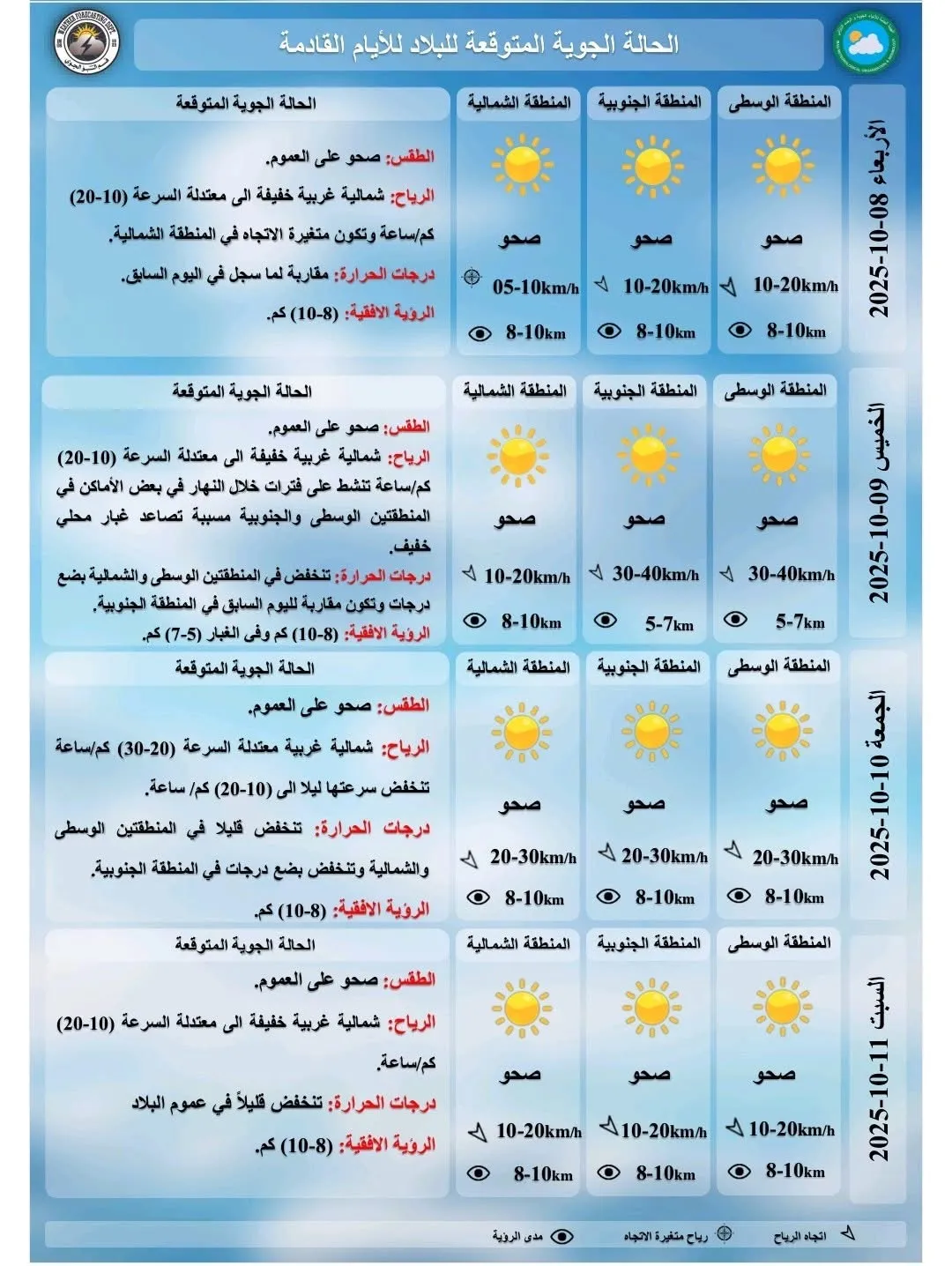 وفيما يلي تقرير هيئة الأنواء الجوية :