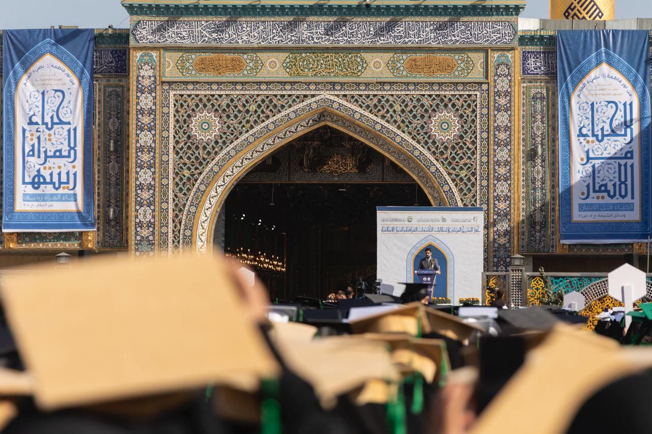 وأوضح أن “تجمع الخريجات من المحافظات كافة يمثل أنموذجًا لأطياف الشعب العراقي، في مشهد يرسم وحدة الوطن ويجسد تنوعه، إذ تلتقي جميع الألوان على لوحة واحدة وهي لوحة العلم والولاية والإخلاص، كما أنَّ هذا الحفل يمتد من نجاح إلى نجاح حاملاً في طياته رسالة عميقة تؤكد أنَّ العلم لا ينفصل عن القيم، ويهدف إلى تعزيز منظومة الهوية الوطنية وروح الانتماء لدى المشاركات، وتخريج جيل يجمع بين العلم والوعي والمسؤولية”.