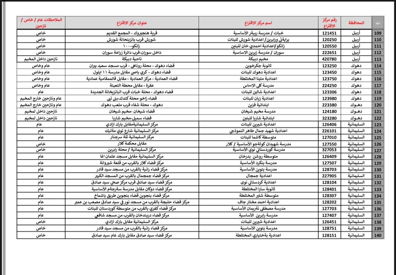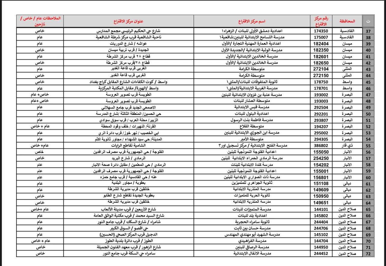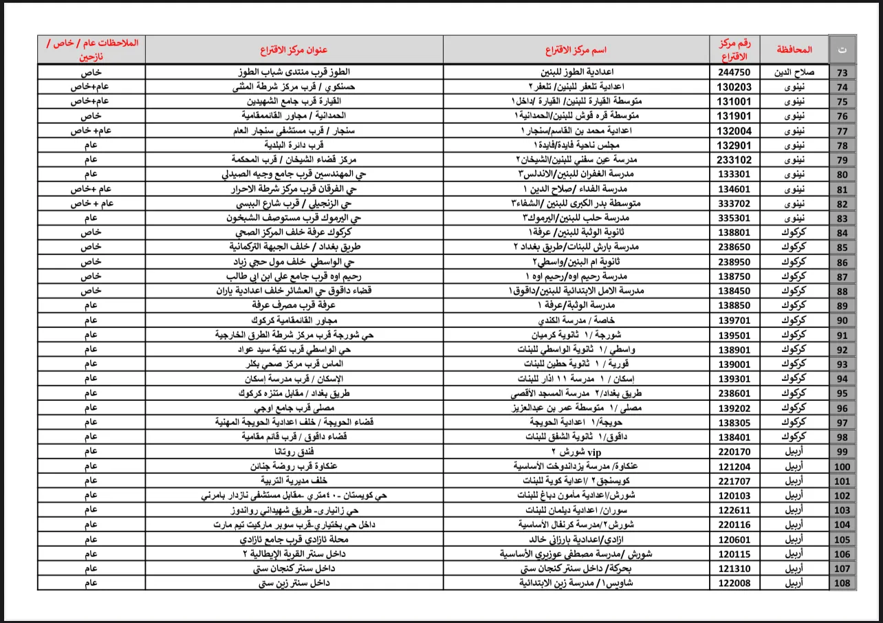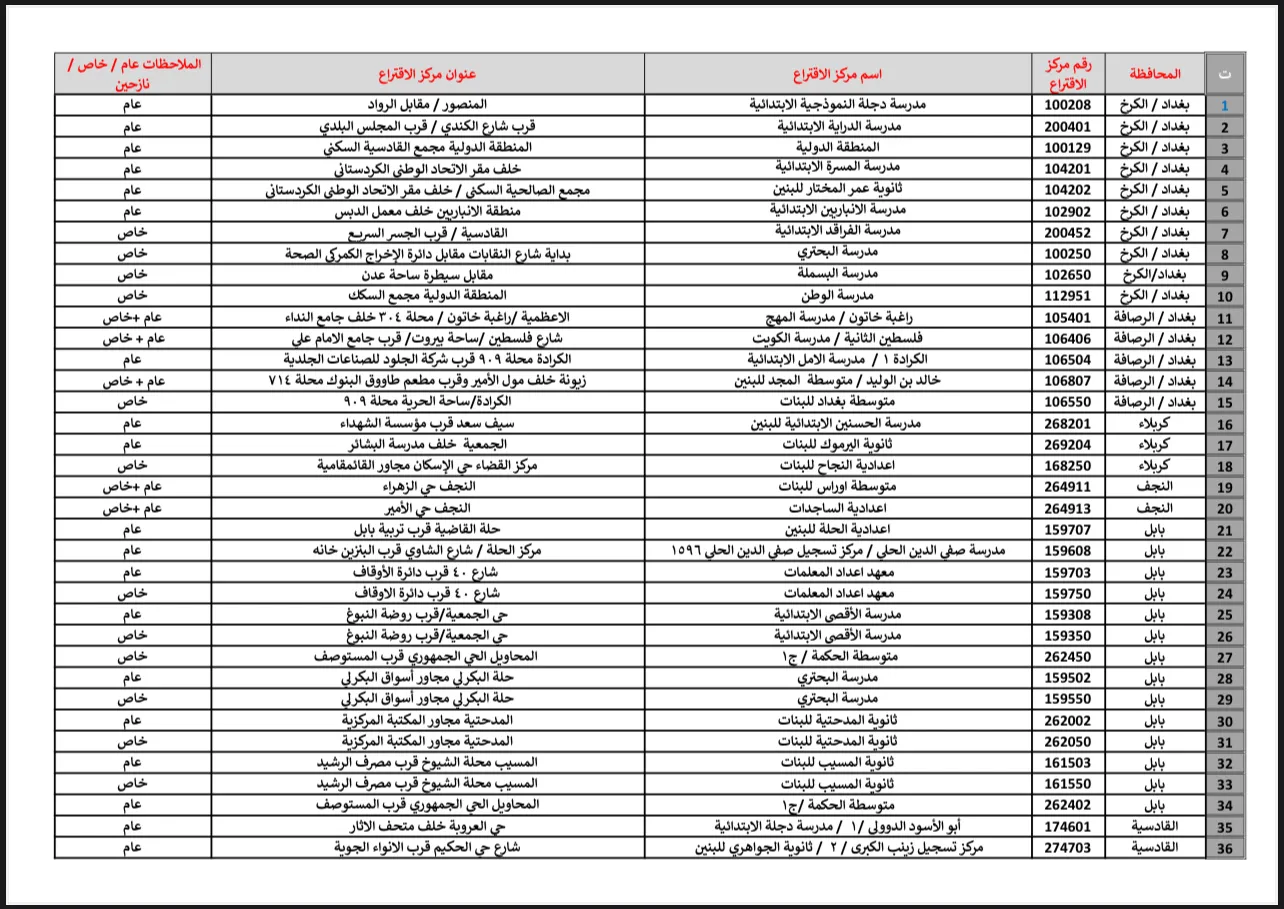 وأدناه أسماء المراكز المسموح لوسائل الإعلام بتغطيتها خلال الانتخابات: