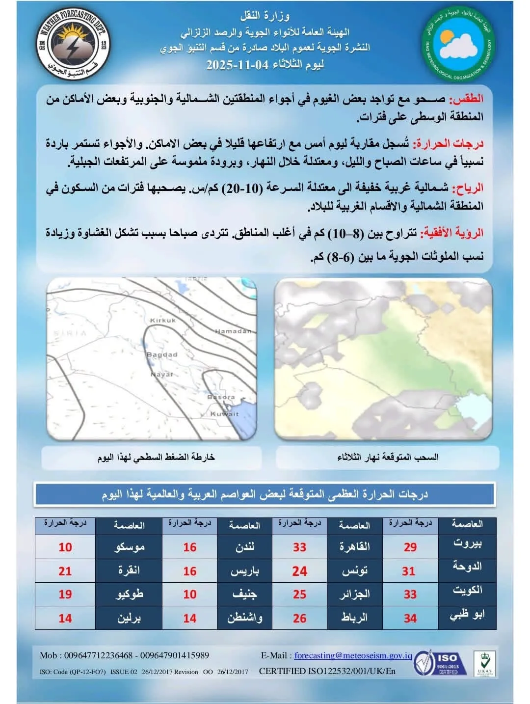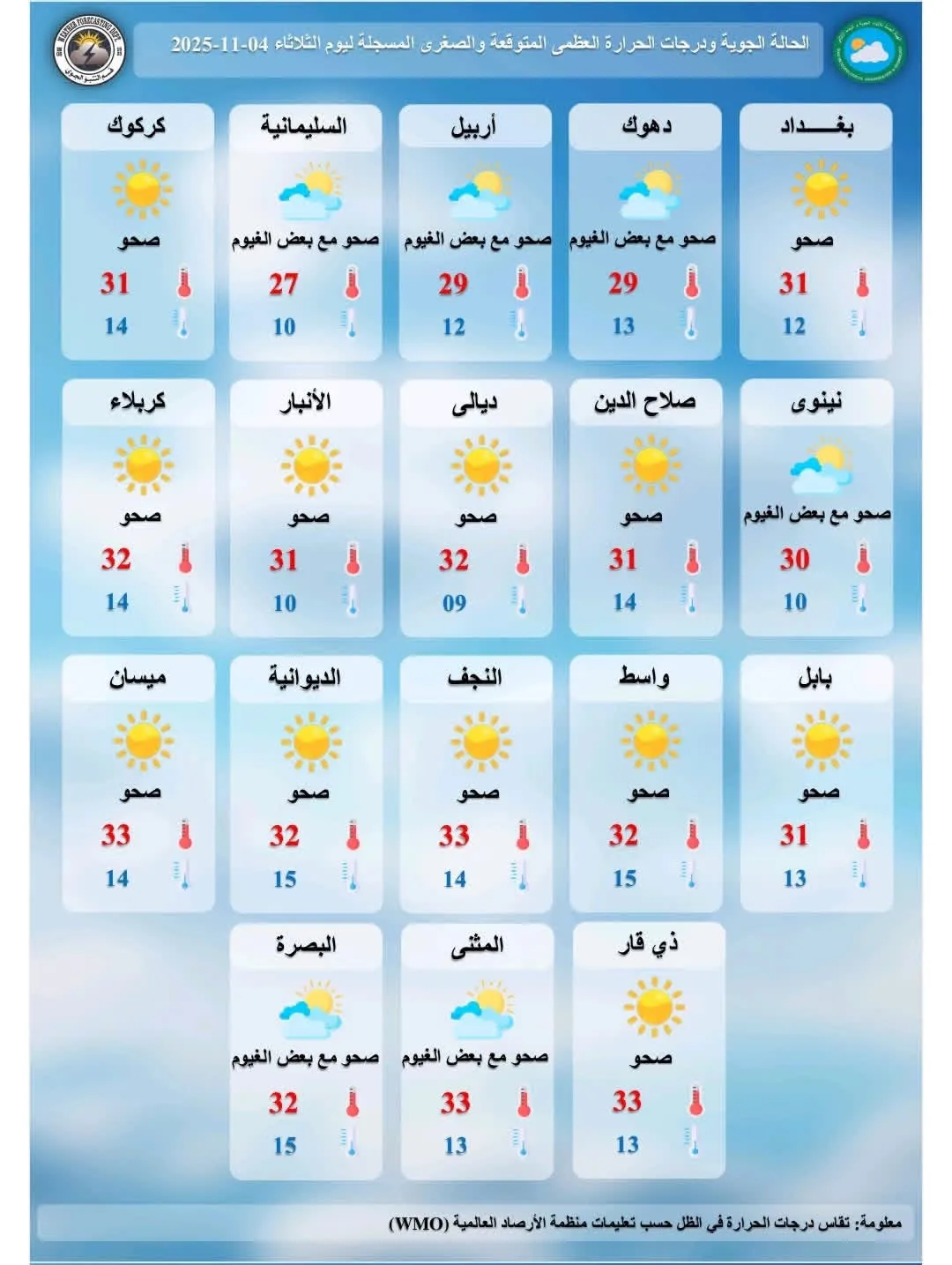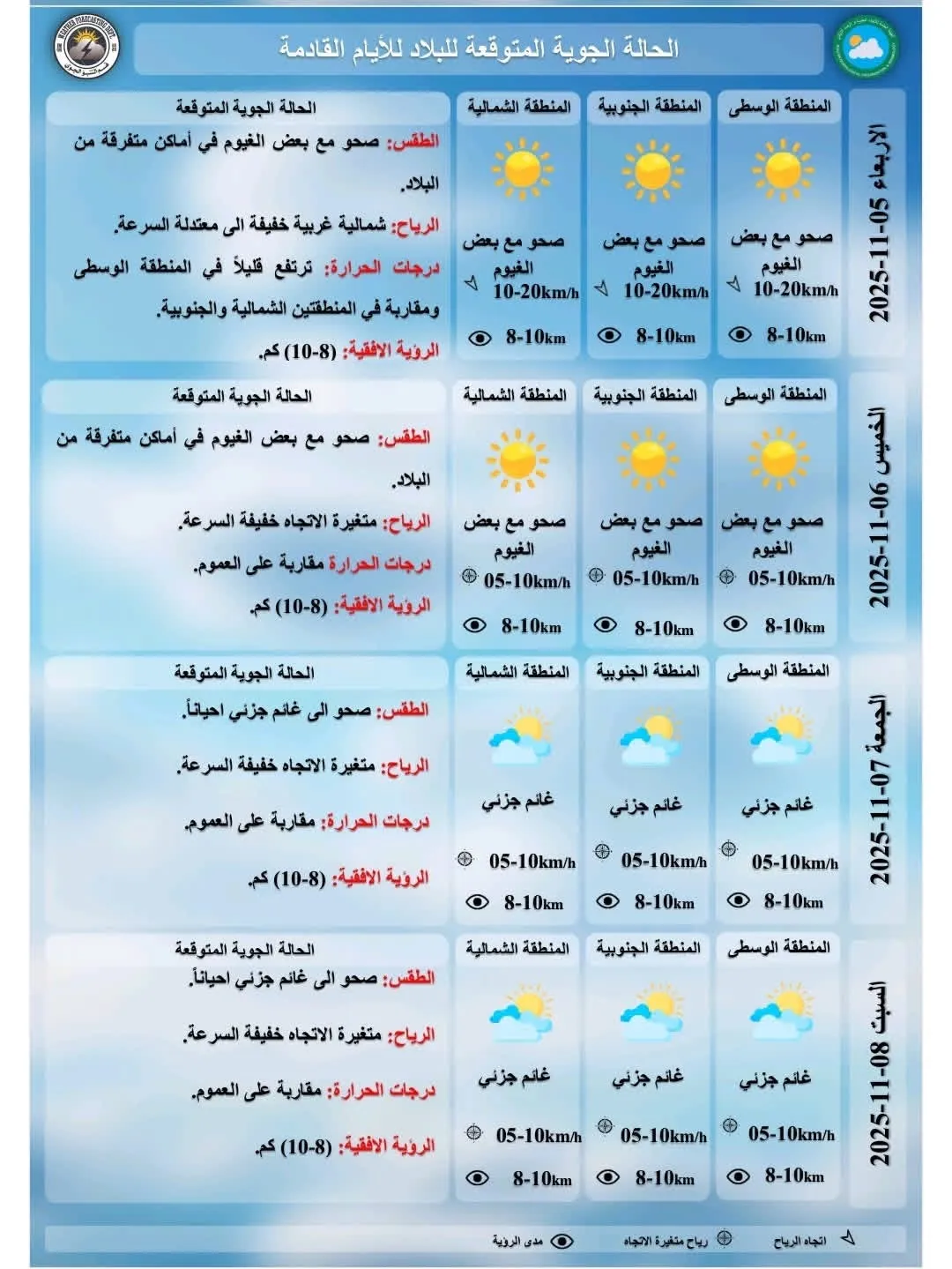 الأنواء الجوية تتوقع ارتفاعا بدرجات الحرارة