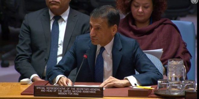قدّم الممثل الخاص للأمين العام للأمم المتحدة في العراق محمد الحسّان ، اليوم الثلاثاء، إحاطته الأخيرة أمام مجلس الأمن الدولي قبيل انتهاء مهمة بعثة الأمم المتحدة (يونامي)، متوقعاً عدم تأخر تشكيل الحكومة العراقية الجديدة.