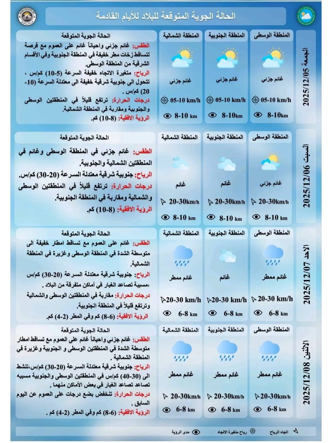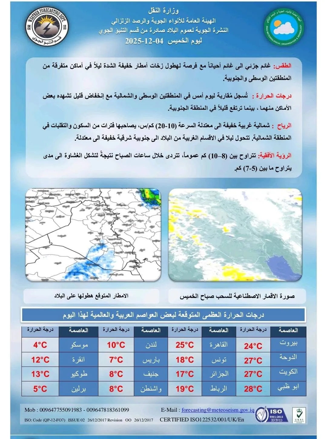 الأنواء الجوية: أمطار في العراق بدءاً من الليلة