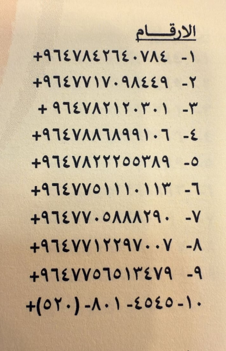 - وندرج أدناه مرفقًا إليكم طيًّا صورًا للأرقام التي تنتحل صفتنا راجين منكم توخّي الحذر وعدم التواصل معها.