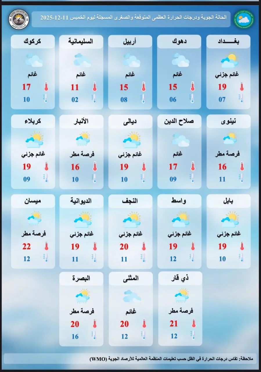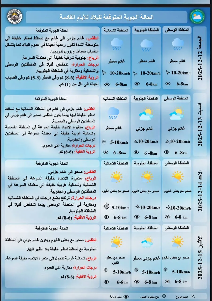 منخفض جوي متوسطي يجلب أجواء غائمة وأمطاراً إلى العراق.