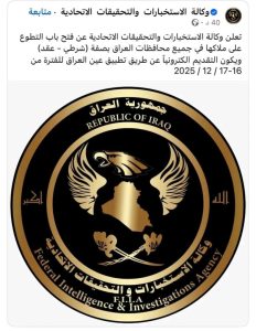 وتم حذف الإعلان بعد وقت قصير من نشر الإعلان الذي حدد فترة التقديم الإلكتروني ليومين فقط (16-17 كانون الأول 2025) عبر تطبيق “عين العراق” والرابط الرسمي للوكالة.