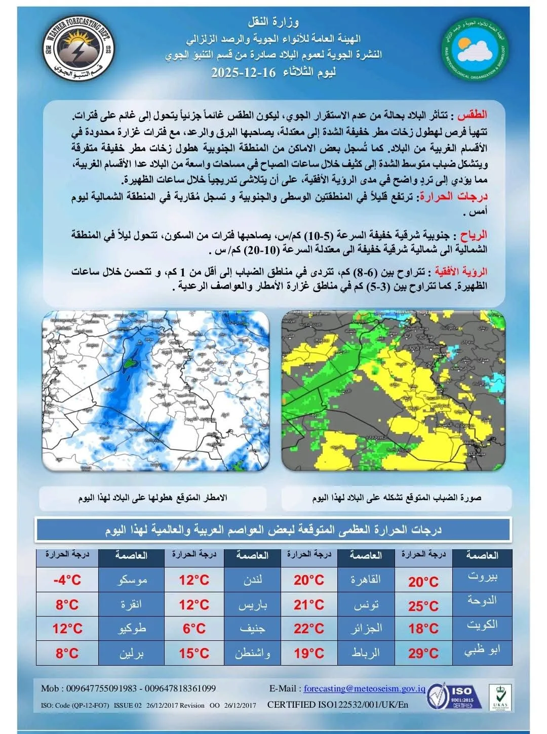 تشير الأنواء الجوية إلى تحسّنٍ تدريجي في الحالة الجوية، مع طقسٍ صحو ومستقر ابتداءً من يوم الجمعة شاركها Facebook Twitter Pinterest