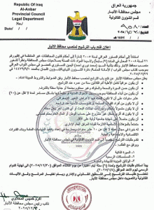 ووفقاً لوثيقة موقعة من نائب رئيس مجلس محافظة الأنبار، حصلت عليها(الغدير)، أنه “تقرر فتح باب الترشيح لمنصب محافظ الأنبار”، وفيما يلي الوثيقة أدناه: