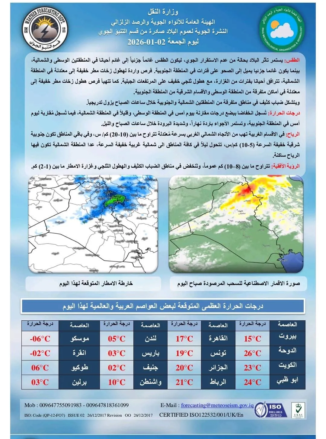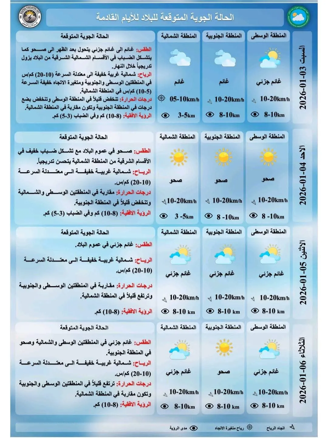 أعلنت هيئة الأنواء الجوية، اليوم الجمعة، حالة طقس العراق خلال الأيام المقبلة .