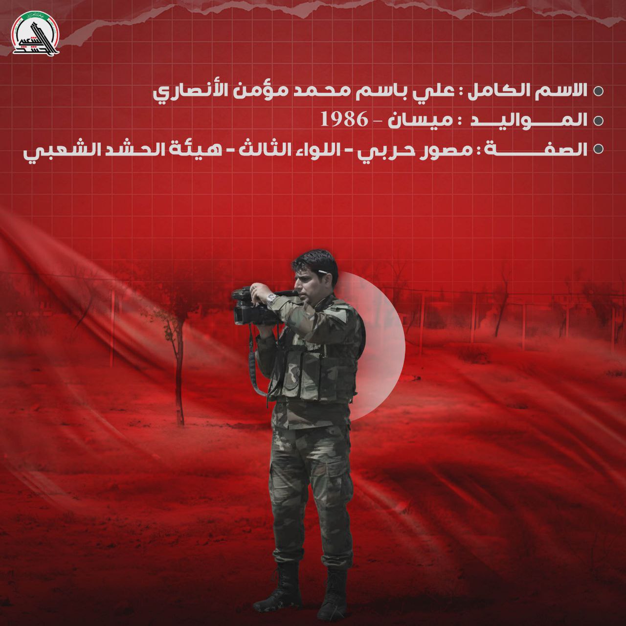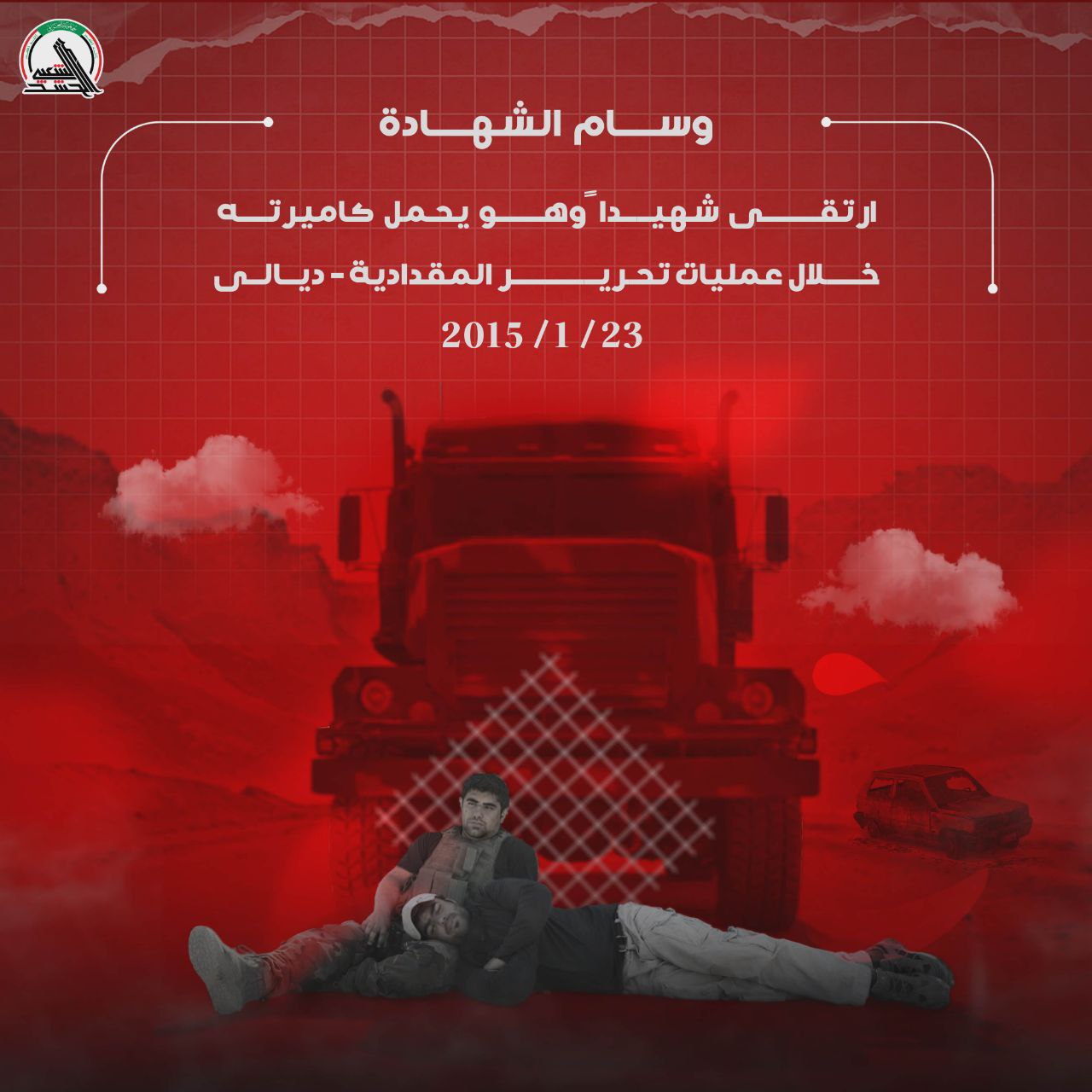 ارتقى شــ ـهيدًا وهو يحمل كاميرته، أثناء مشاركته في تغطية عمليات تحـ ـرير قضاء المقدادية بمحافظة ديالـــــى بتاريخ 23 / 1 / 2015