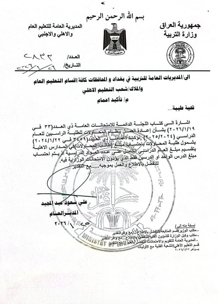 وذكر بيان لوزارة التربية، أن “آلية احتساب مبالغ طلبة المحاولات في المدارس الأهلية تتم من خلال تقسيم أجور العام الدراسي الكامل على عدد المواد الدراسية”، مضيفاً، أنه “يُستوفى من الطالب مبلغ المادة الواحدة أو المادتين فقط اللتين يؤدي فيهما الامتحانات الوزارية”.