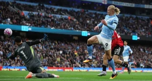سجل النرويجي إيرلنغ هالاند هدفيه السابع والثامن في شباك مانشستر يونايتد ليقود فريقه مانشستر سيتي إلى الفوز بديربي المدينة 3-0 ضمن الجولة الرابعة من الدوري الإنجليزي الممتاز.