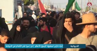 الديوانية تحيي ذكرى شهادة النبي (ص) راجلة نحو النجف الاشرف لتجسيد الولاء والمحبة تقرير – احمد حسن